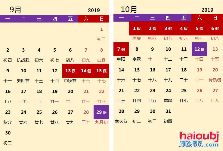 2018年已經(jīng)接近尾聲,即將迎來(lái)的將是全新的2019年,很多朋友最關(guān)心的就是上班與放假,調(diào)休等事宜,今天昆明搬家公司小編給全國(guó)的親們收集整理了2019年全年放假安排表,伙伴們可以合理的安排自己的出行時(shí)間,無(wú)論你是需要搬家、拜訪領(lǐng)導(dǎo)、出遠(yuǎn)門、旅游等。提前安排自己的行程準(zhǔn)沒(méi)錯(cuò)。下邊是搬家公司小編整理的全年節(jié)假日休息及調(diào)休放假安排表,留著后邊用得到!